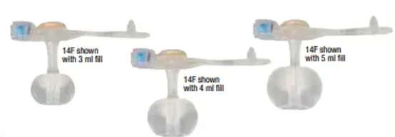 - Re-inflate the balloon with new sterile or distilled water. Never use saline or air to inflate the balloon.