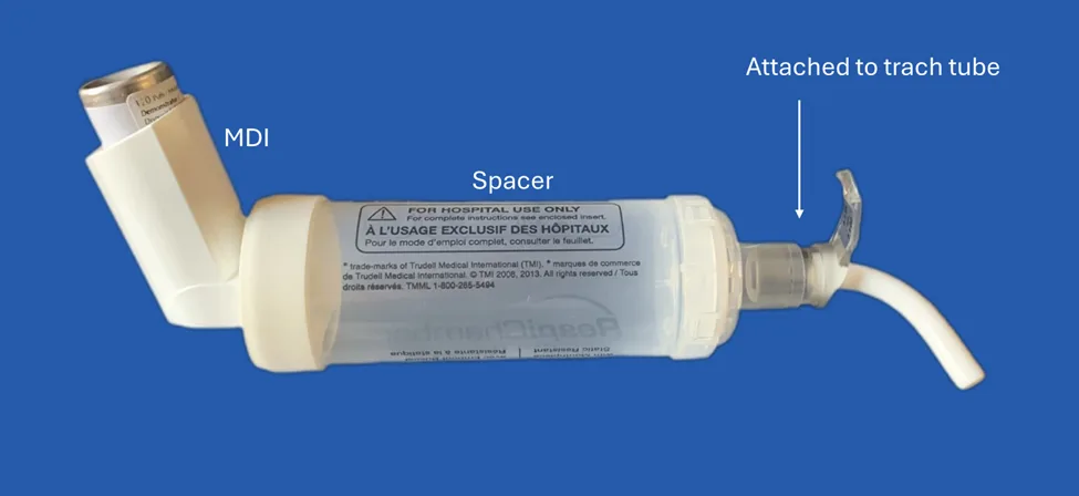 - MDIs can be administered through the child’s tracheostomy tube using a spacer device (also known as an AeroChamber) or placed in-line with a ventilator circuit.