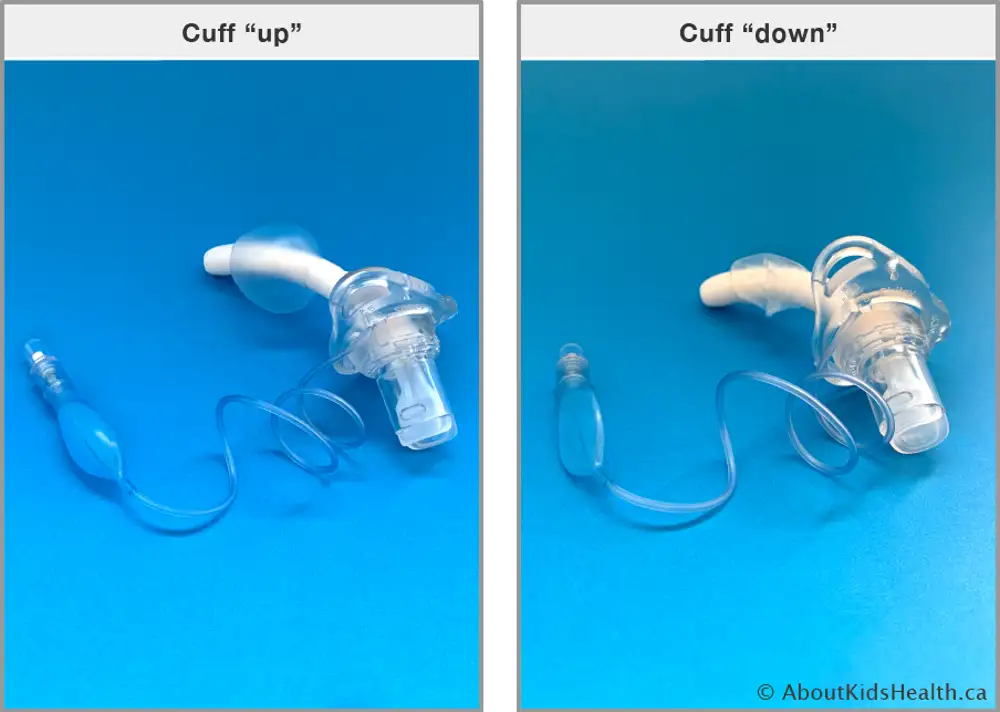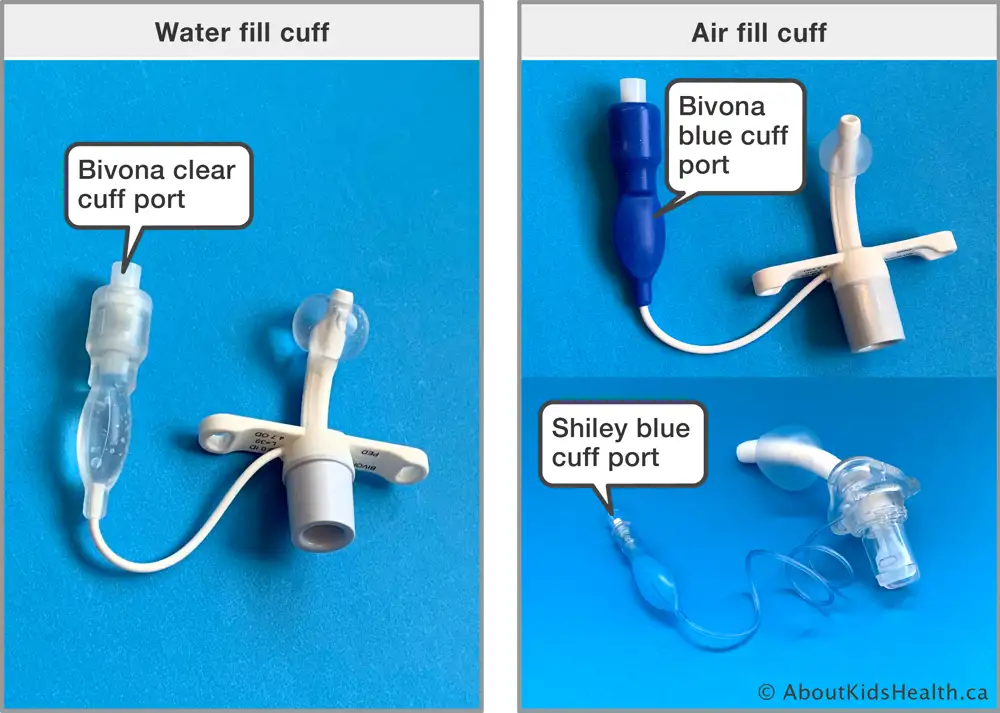 Paediatric tracheostomy tubes may be a cuffed or uncuffed. The purpose of a tracheostomy cuff is to maintain the air delivered from the ventilator to the lungs, improving ventilation. When the cuff is inflated, it fills the tracheal space around the tracheostomy tube to prevent airflow from escaping around the tube and up through the vocal cords and into the mouth and nose (‘leaking’).