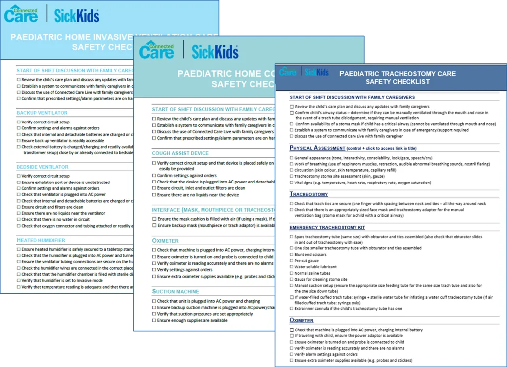 Children using respiratory equipment require highly vigilant and skilled caregiving 24/7. Safety checklists are a helpful tool for all providers, family caregivers and home care nurses alike, offering a standardized approach to identify and address possible patient safety issues and promotes readiness for an emergency.