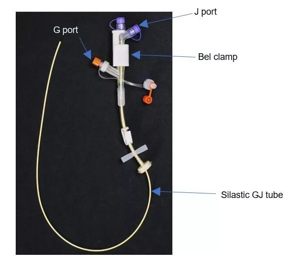 - Y-adaptor: Allows access for tube feeding, fluids, medication and blended diet administration. It can be changed if needed.