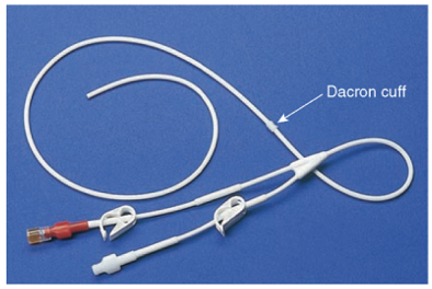 Dacron cuff visible outside of the skin